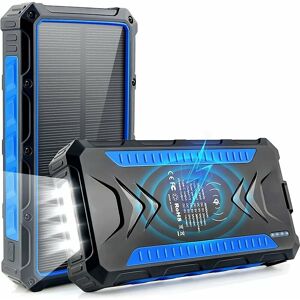 THSINDE Banco de energía solar de 36000 mAh, cargador solar inalámbrico Qi 2 puertos USB y 1 carga rápida tipo C, fuente de alimentación de emergencia a