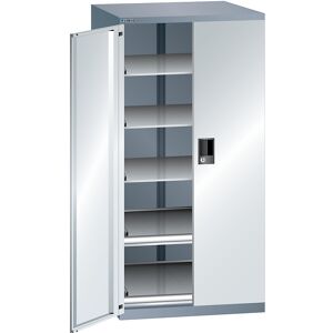 LISTA Cajonera con puertas batientes, altura 1450 mm, 5 baldas, carga máx. 75 kg, gris metálico / gris luminoso