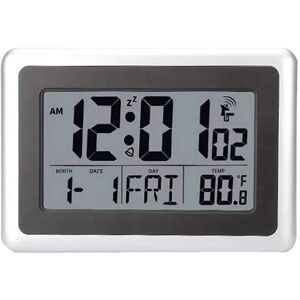 Fuienko - Reloj de pared Digital Atomic, pantalla Lcd grande, funciona con pilas, temperatura interior, calendario, mesa de pie, Snooze sin b