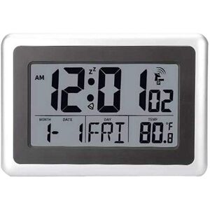 FUIENKO Reloj de pared Digital Atomic, pantalla Lcd grande, funciona con pilas, temperatura interior, calendario, mesa de pie, Snooze sin b