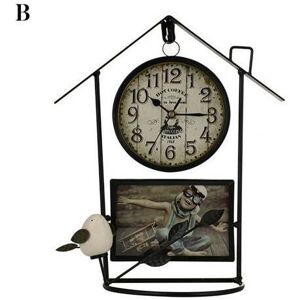 FUIENKO Reloj despertador Retro de hierro antiguo para el hogar, decoración de pared silenciosa para casa de campo, sala de estar, estudio, artesanías,Black B