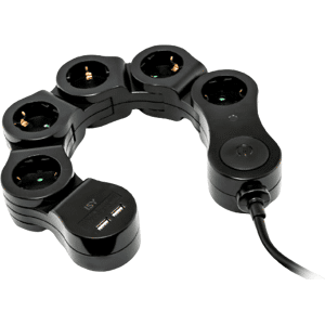 ISY Regleta - ISY IPS-5000-B Pivoting Power Strip 5 AC+USB, Cinco enchufes, Flexible, Negro