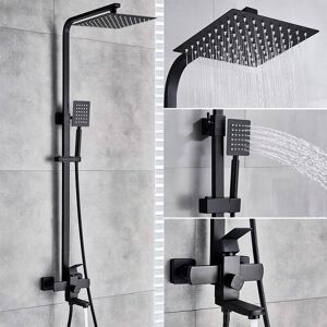 OUYIFAN Columna de ducha cabezal de ducha de lluvia sistema de ducha soporte de pared, ducha fija, ducha de mano, mezclador de baño,Negro Mate b