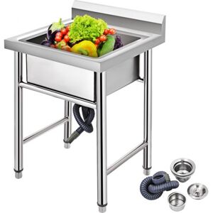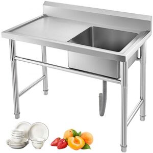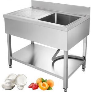 478.99 VEVOR Fregadero Comercial de Acero Inoxidable para Fregadero de Cocina, 1 Compartimientos de Tamaño Total 100 x 61 x 95 cm Plata, Hecho a Mano Con Plataforma Derecha para Fregadero de Barra Inferior