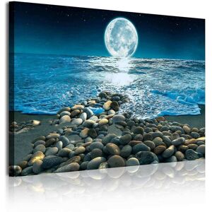 DEKOARTE 345 - Cuadros Modernos Impresión de Imagen Artística Digitalizada Paisaje Nocturno Luna iluminando Playa 1 Pieza 120x80cm - Dekoarte