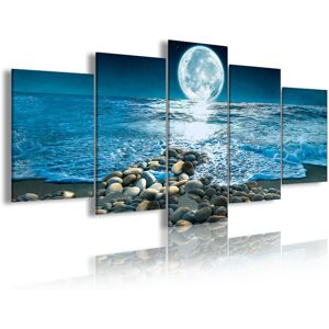 DEKOARTE 441 - Cuadros Modernos Impresión de Imagen Artística Digitalizada Paisaje Nocturno Luna iluminando la Playa 5 Piezas 200x100cm xxl - Dekoarte