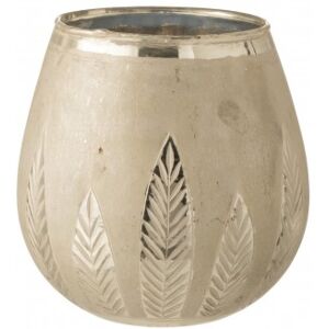 LANADECO Portavelas hoja redondo cristal plata Alt. 18