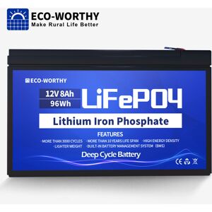 Ecoworthy - Bater��a recargable de ciclo profundo eco-worthy 8Ah 12V LiFePO4 con bms incorporado