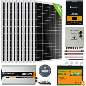 Ecoworthy - Kit de panel solar ECO-WORTHY de 1700 W con inversor solar de onda sinusoidal pura de 3000 W y 24 V y bater��a recargable de litio de 100