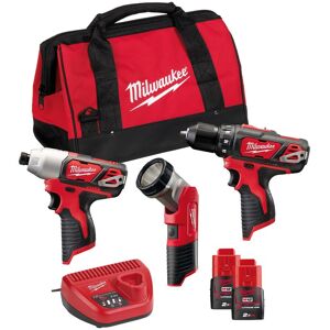 Milwaukee M12 BPP3A-202B 12V Litio-Ion Juego de Taladro /atornillador (M12 BDD) & Atornillador de impacto (M12 BID) & lámpara de trabajo (C12 T) (2x baterías 2.0Ah) en bolso
