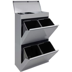 Arregui - Top CR622-B Cubo de basura y reciclaje de acero de 4 cubos con bandeja superior multiusos, mueble de reciclaje, 4 x 17 L (68 L), gris claro