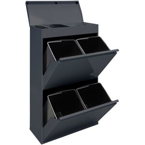 ARREGUI Top CR624-B Cubo de basura y reciclaje de acero de 4 cubos con bandeja superior multiusos, mueble de reciclaje, 4 x 17 l (68 l), gris oscuro