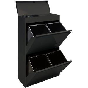 Arregui - Top CR626-B Cubo de basura y reciclaje de acero de 4 cubos con bandeja superior multiusos, mueble de reciclaje, 4 x 17 L (68 L), negro