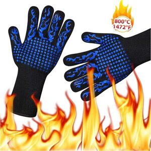 Fuienko - Guantes ignífugos para barbacoa, protectores de manos ignífugos para horno microondas, Kevlar, 500 °C, 2 unidades,Blue torch