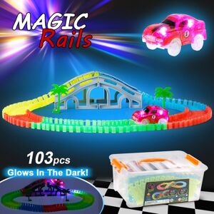 ASUPERMALL Feng yuan da 170203-B 103PCS 55mm Twist Railway Montaje flexible Neon Glow in the Dark con Bridge Track Race Car para ninos