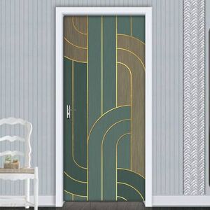 Fuienko - Pegatina 3D para puerta, Mural de pared a rayas, papel tapiz artístico, autoadhesivo extraíble, calcomanías de pared para sala de estar,