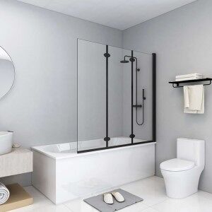 vidaXL Mampara De Ducha Plegable 3 Paneles Esg 130x138 Cm Negro
